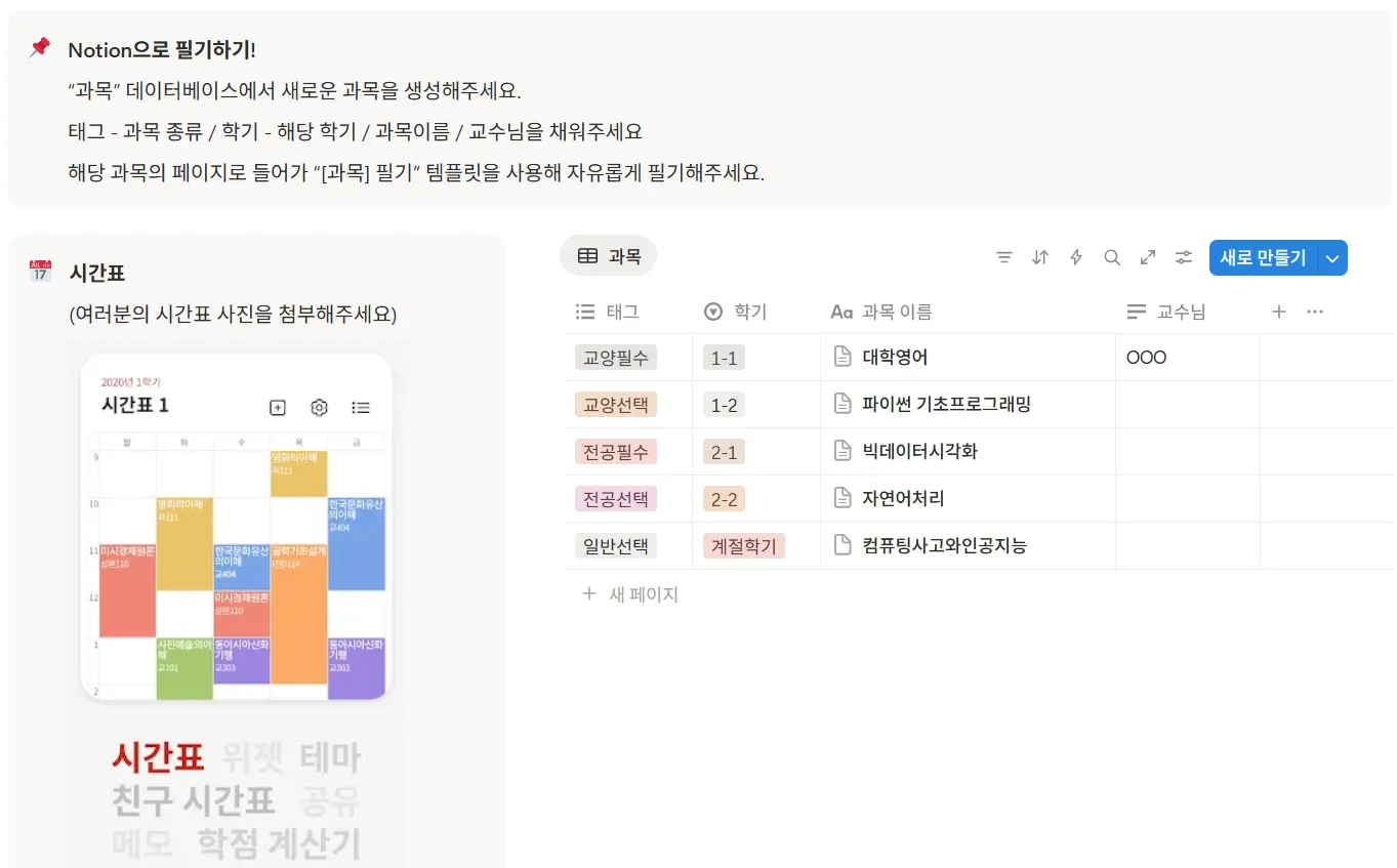 학생들이 간단하게 스프레드시틀로 활용하여 다양한 구조화 방식을 실습했습니다.