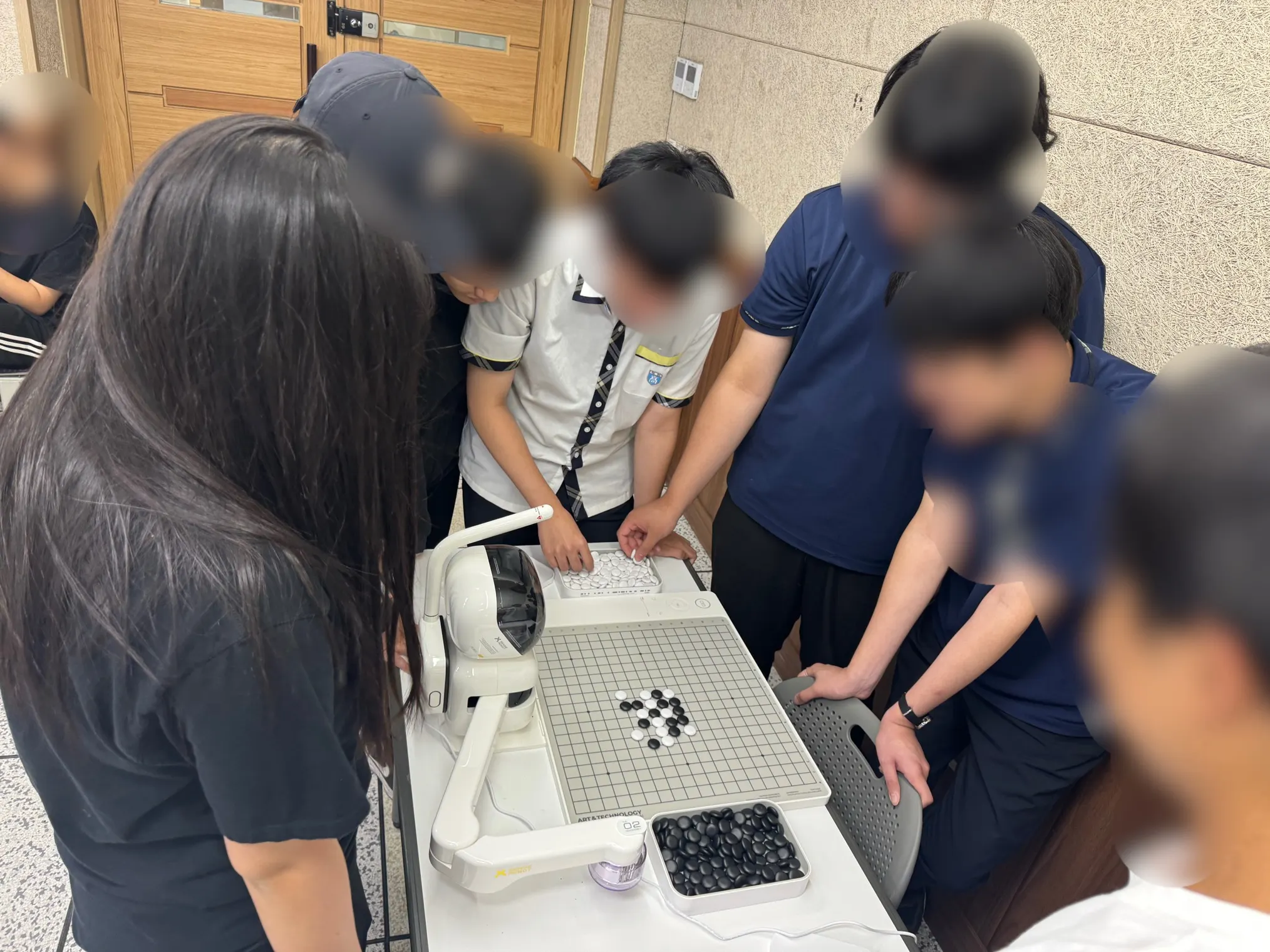 먼저, 로봇에게 오목 규칙을 안내한 후 팀을 구성하여 팀 vs 로봇 대결을 펼쳤습니다. 대회가 끝난 후에는 제가 개인 사비로 구매한 상품을 우승팀에게 증정하였습니다.