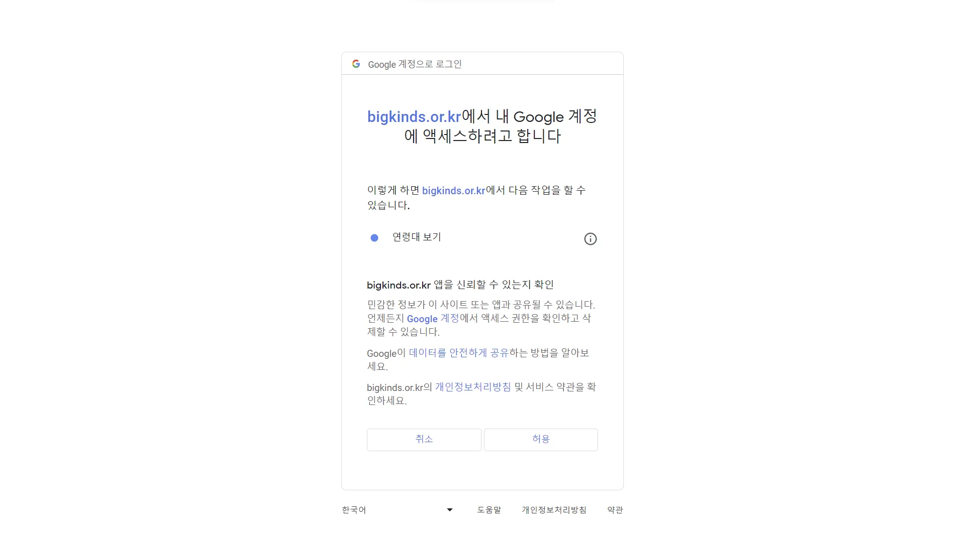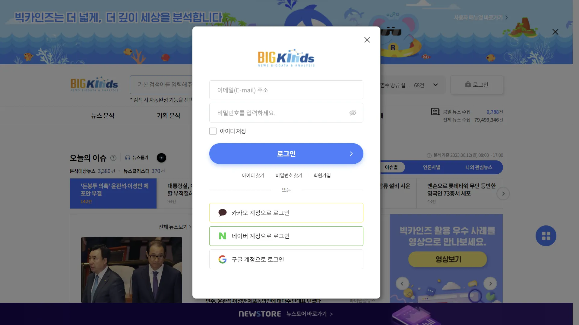 빅카인즈에 접속해서 로그인을 합니다.