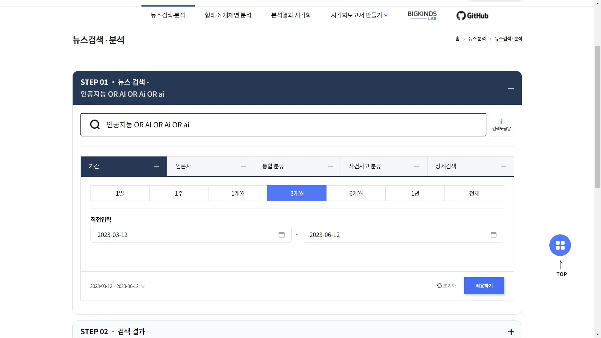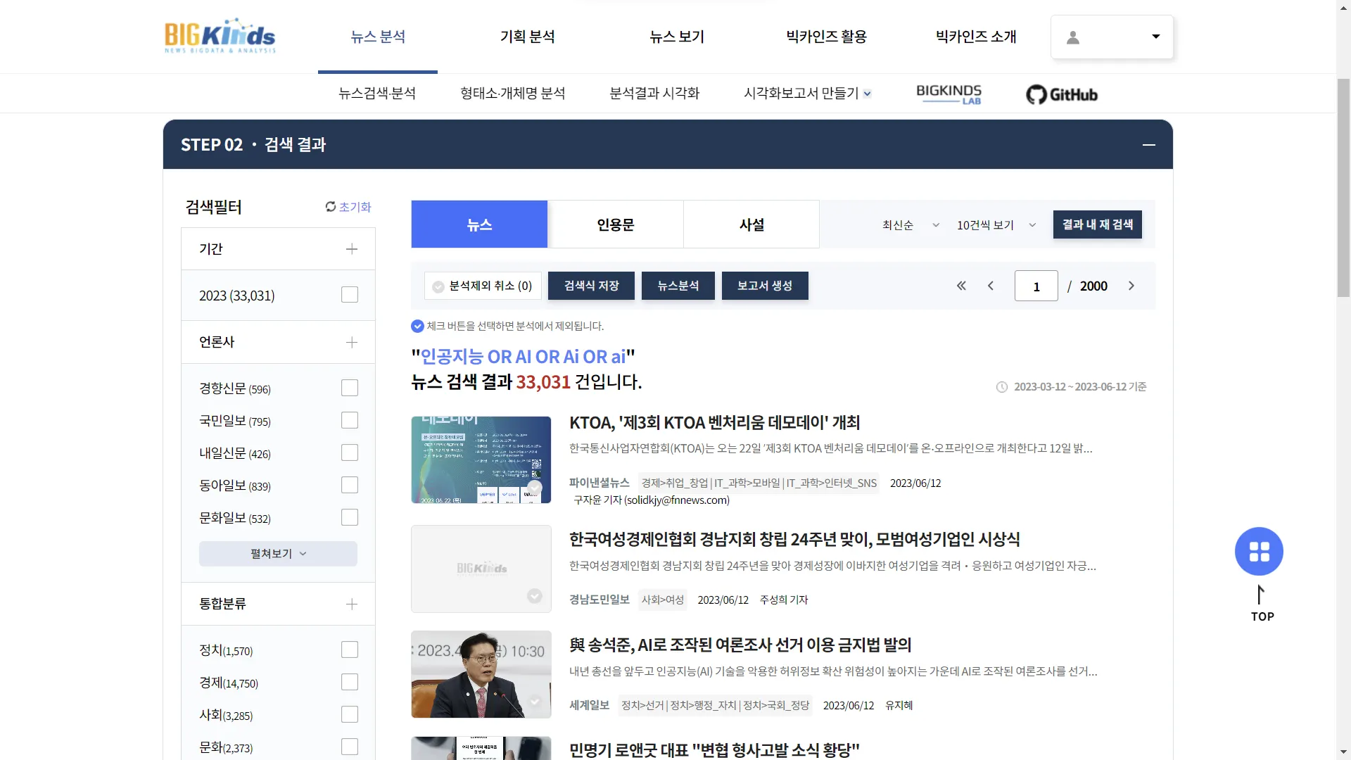 (빅카인즈에서는 다양한 검색 옵션이 가능합니다. 검색 도움말을 참고하세요~)