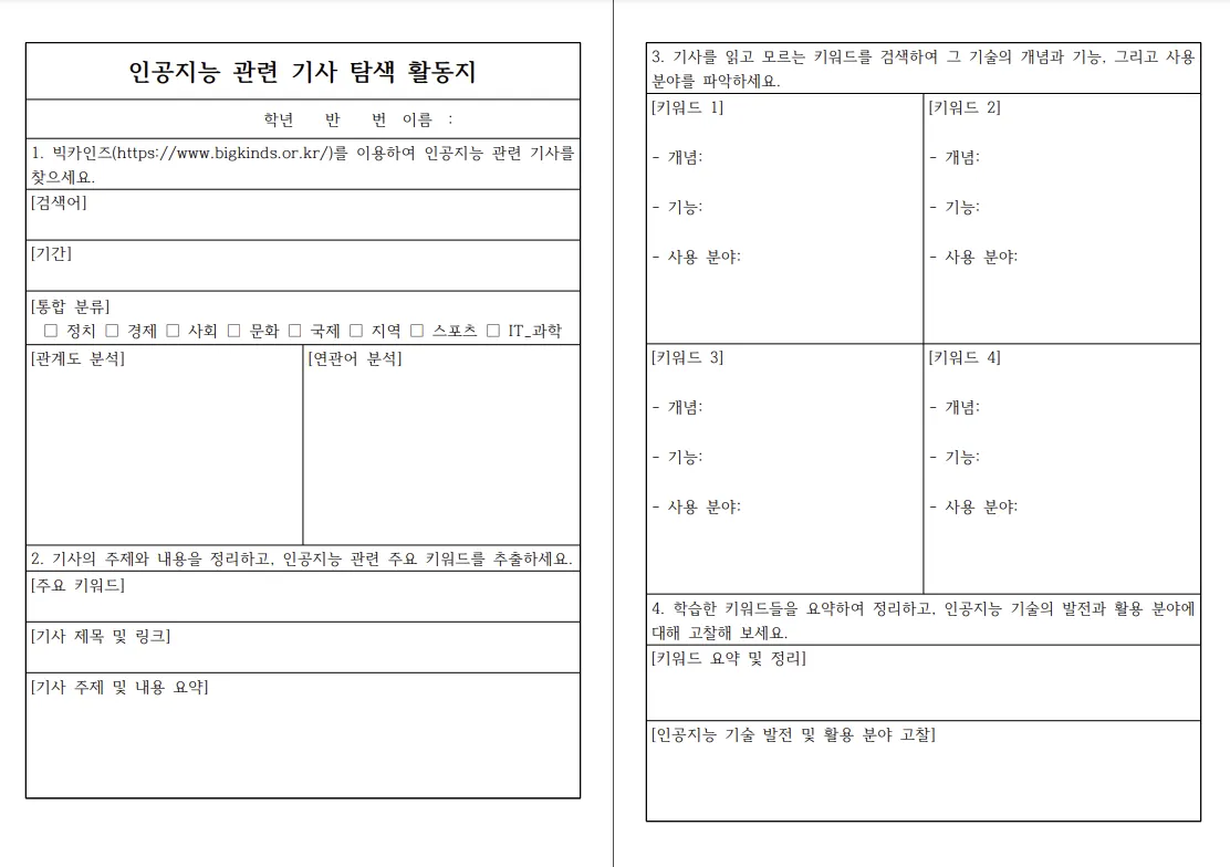 기사를 읽으며 최신의 정보를 얻을 수 있으며 모르는 단어에 대해서는 재검색을 통해 학생들이 인공지능에 대해서 관심을 갖고 다양한 글을 접할 수 있을 것입니다.