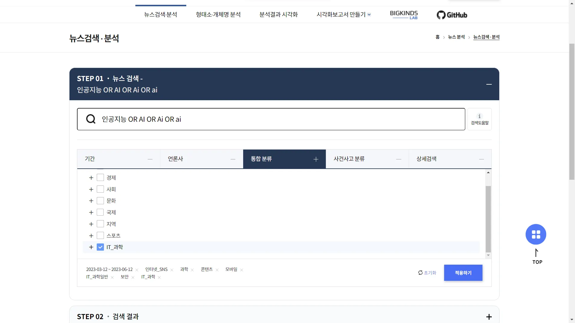 3개월간의 기사와 IT_과학에 관련된 기사만 확인을 하도록 했습니다.
