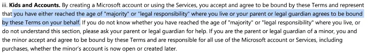 출처 : Microsoft(2023, July 30). Microsoft Services Agreement. https://www.microsoft.com/en/servicesagreement
