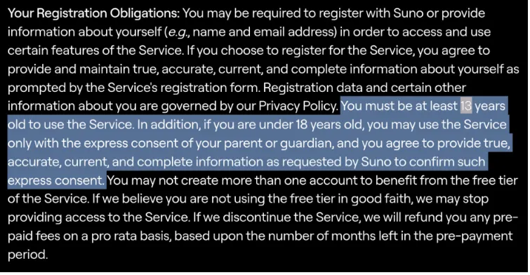 suno.ai : 만 13세 이상~만 18세 미만은 보호자 동의하에 사용 가능