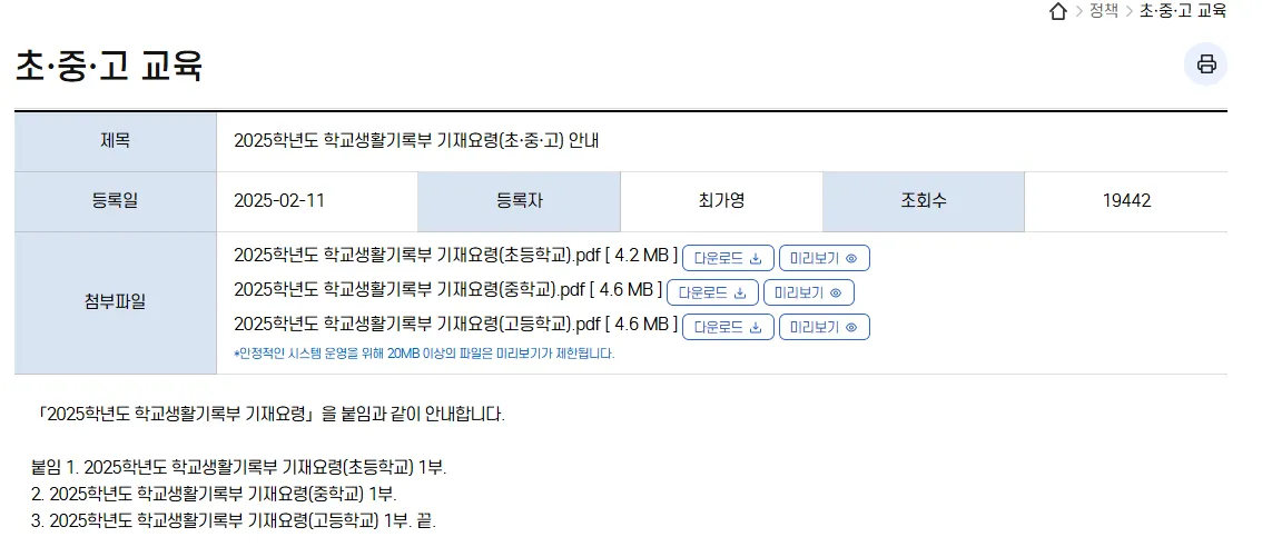 생활기록부 기재 요령은 교육부 공식 사이트에서 누구나 쉽게 다운로드 받아 활용할 수 있습니다.