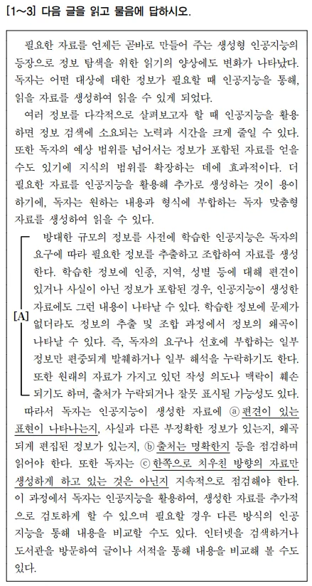 국어 [1~3] 인공지능 / 역대급… 국어 1번 지문을 인공지능 내용이 장식했습니다.