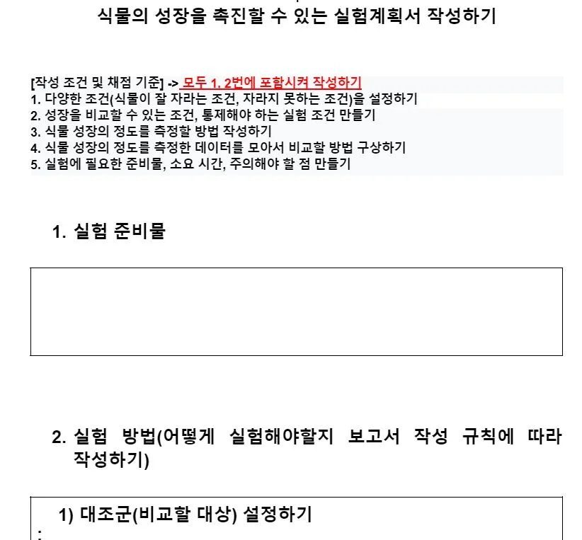 <생물수업자료 : 실험계획서 일부>