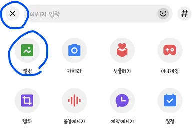 카카오톡에서 +버튼 → 앨범 → 사진 선택 →