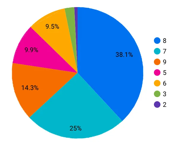 뒤이어 7 9의 비율을 합산하면 3:7 이상으로 무려 77%의 선생님들이 실습을 더욱 중요하게 생각하고 계시는 걸 확인할 수 있습니다.
