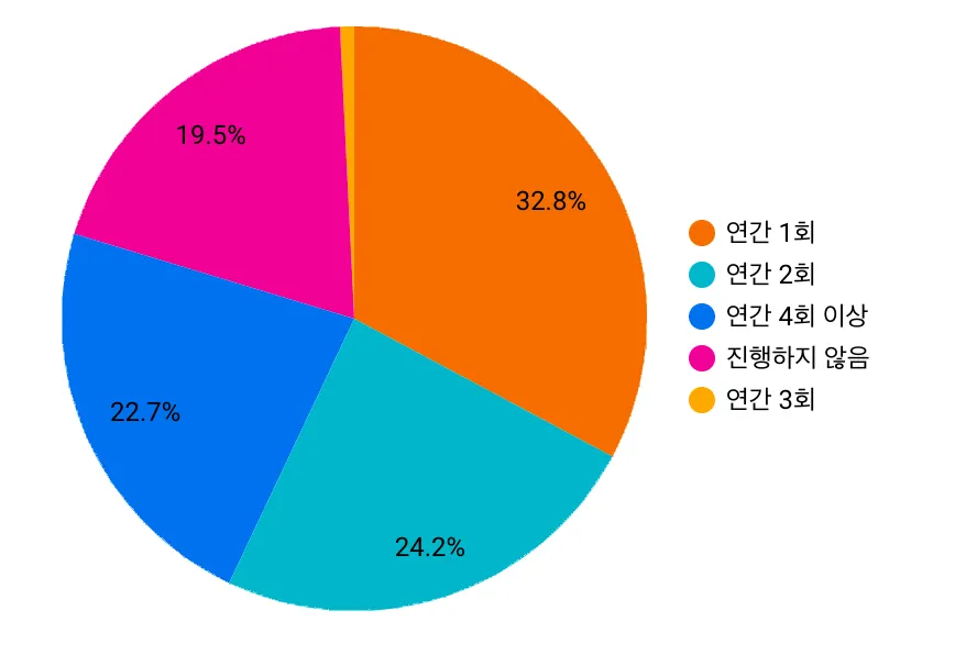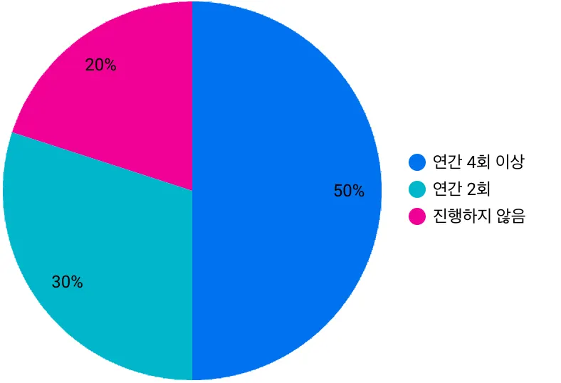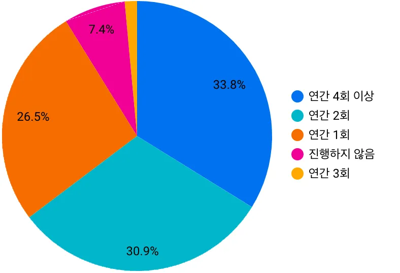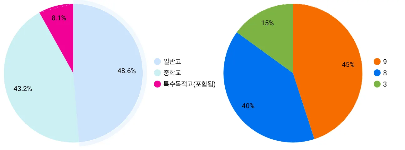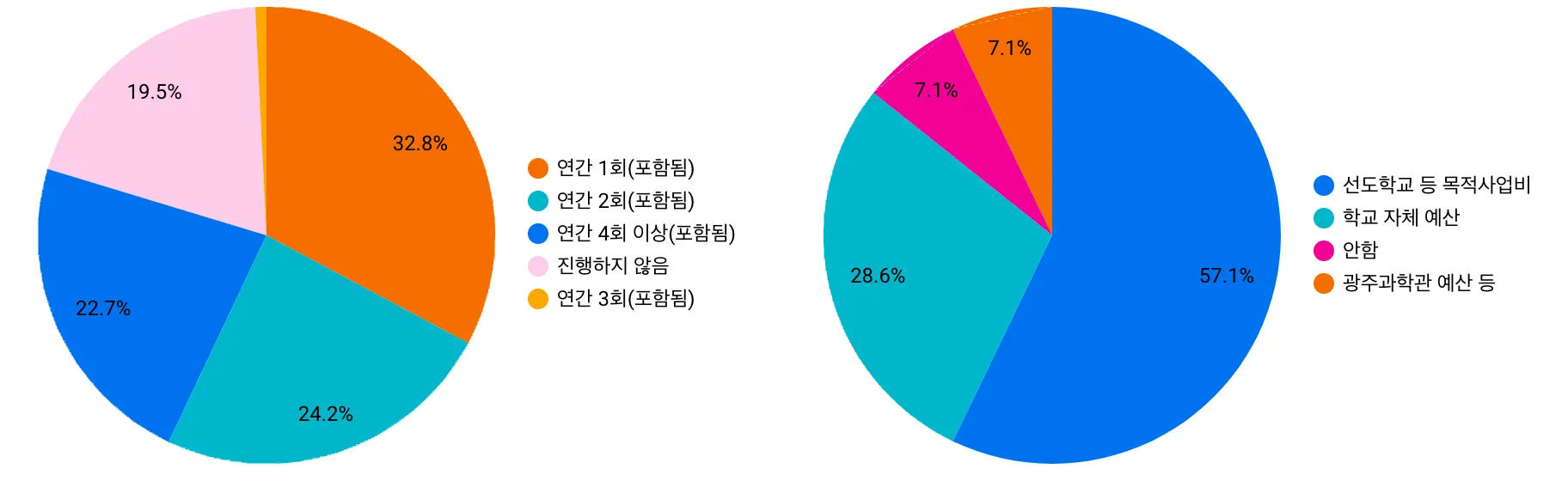 아무래도 고등학교는 학생들의 대입 수시 전형에 많이 활용할 수 있다 보니 행사가 많이 많이 열리는 것을 확인할 수 있었네요! 그리고 특목고의 경우 열린다면 연간 2회 이상으로 많이 자주 열리는 것을 확인할 수 있었습니다. 중학교의 경우 상대적으로 참여율이 높지 않다는 것이 두드러지죠?