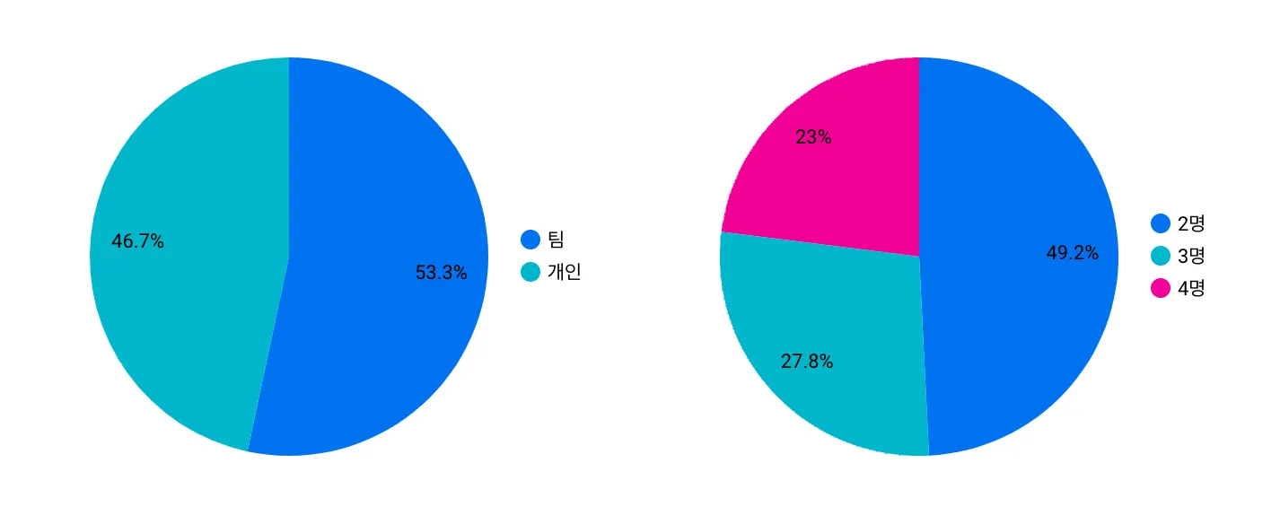 자자, 선생님들 들리시나요? 우리 아이들이 울고 있는 소리가!! ㅎㅎ 농담입니다. 조사 결과 팀과 개인 프로젝트 거의 비슷한 비율로 나왔는데요. 그중에서도 2명의 학생으로 구성된 팀 프로젝트를 선호한다는 이야기가 많았습니다.