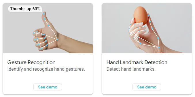Mediapipe는 여러 가지 시각 인식 기능을 제공합니다. 이 중 교육적으로 활용할 수 있는 대표 기능은 다음과 같습니다:
