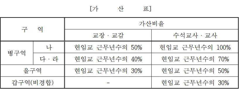 일단 특/갑/을/병 구역은 저렇습니다. 저게 왜 중요하냐면 아까 봤던 ‘가산년수’에 적용돼요.