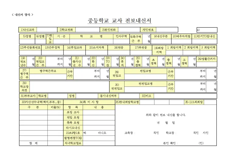 [나이스]-[나의메뉴]-[인사]-[전보]-[(중등) 전보내신서 작성]에서 쓸 수 있었어요!