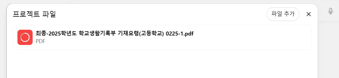 여기에서 ‘파일 추가’ 버튼을 눌러 방금 저장한 생활기록부 기재 요령 파일을 업로드해 주시면 됩니다.