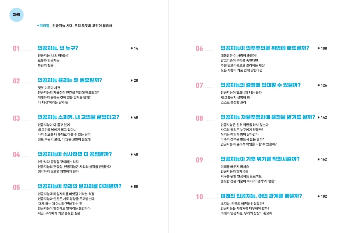 [<인공지능 윤리를 부탁해> 도서 목차 , 출처: yes24]