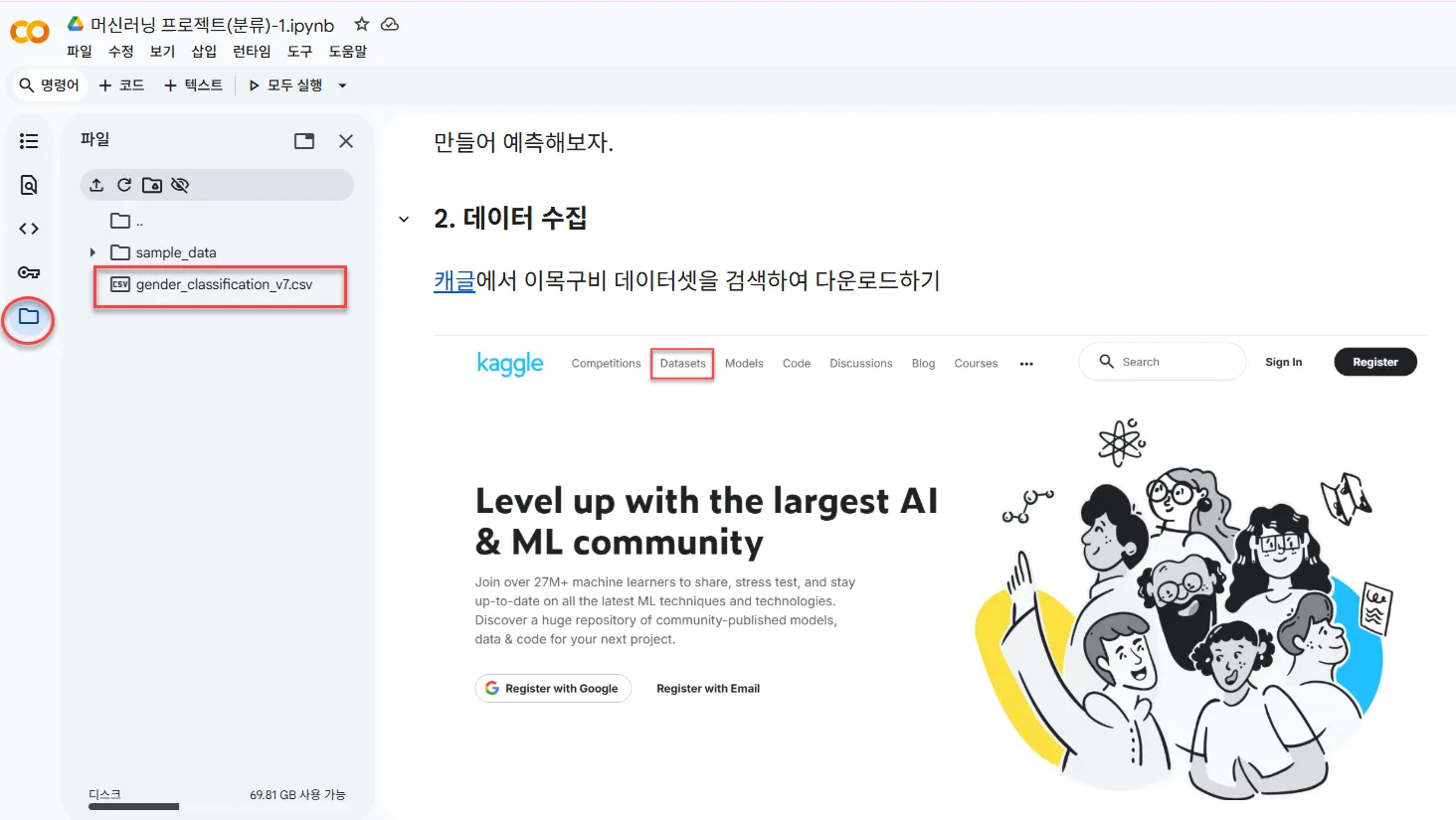 파일 업로드 후 데이터 분석 및 머신러닝구현 과정을 하기에 적합한 코랩 환경