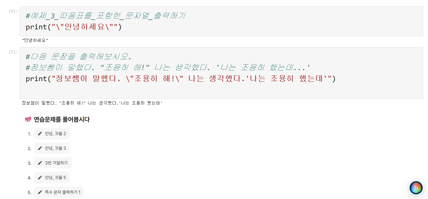 코들에서 시작하고 코랩으로 넘어오면 주피터 노트북 활용에 대한 이해가 있기 때문에 코랩에서의 코드 실행도 학생들이 익숙해합니다. 코랩에서는 텍스트나 코드 작성을 잘못하여 삭제하거나 편집하는 일이 생길 수 있다는 단점이 있어 이를 사전에 안내하여야 합니다.