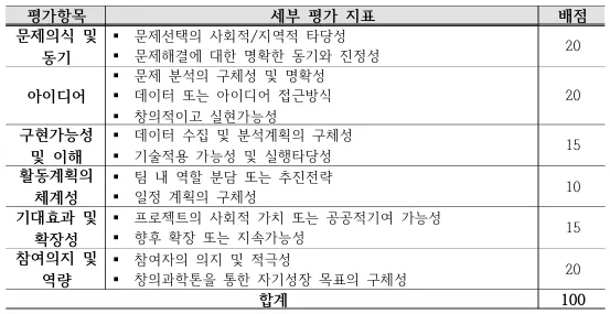 대회가 요구하는 평가 기준을 "프로젝트 점검 도구"로 활용하도록 안내했을 뿐이다.