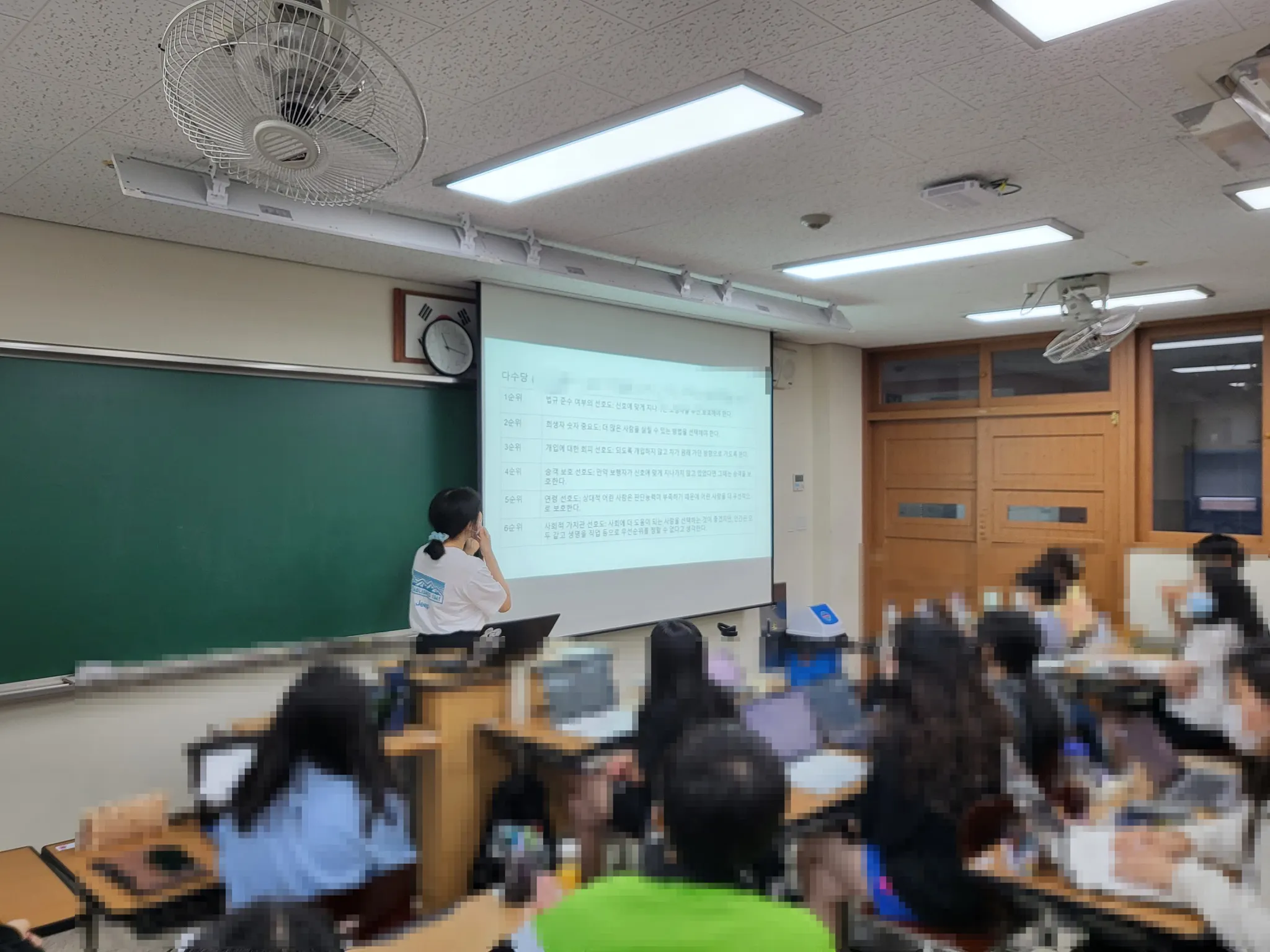 투표 이전에 팀 별로 준비한 발표를 진행했고, 질의 응답과 토론 시간을 통해서 학생들이 의견을 교류할 수 있도록 했습니다.
