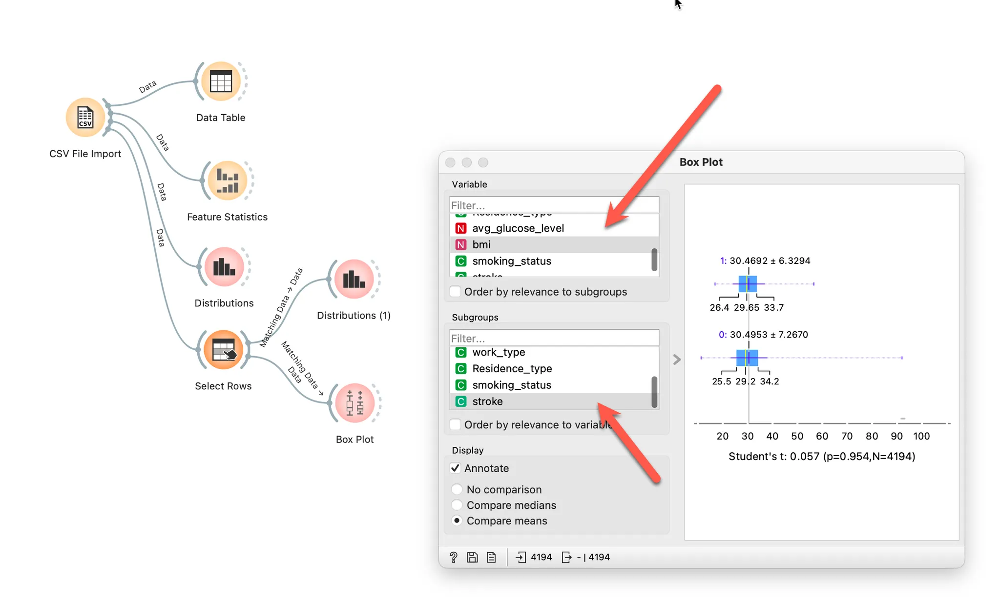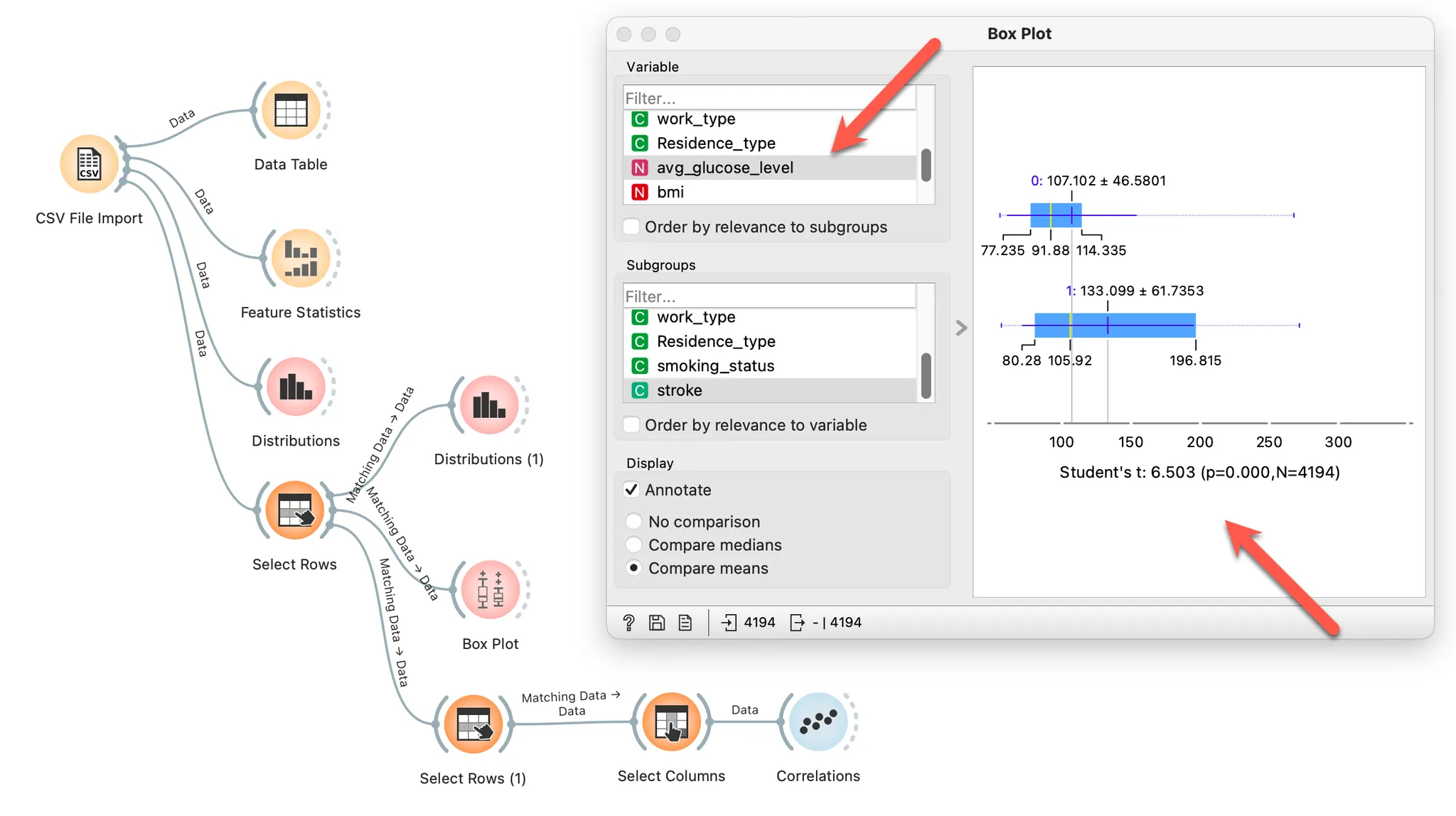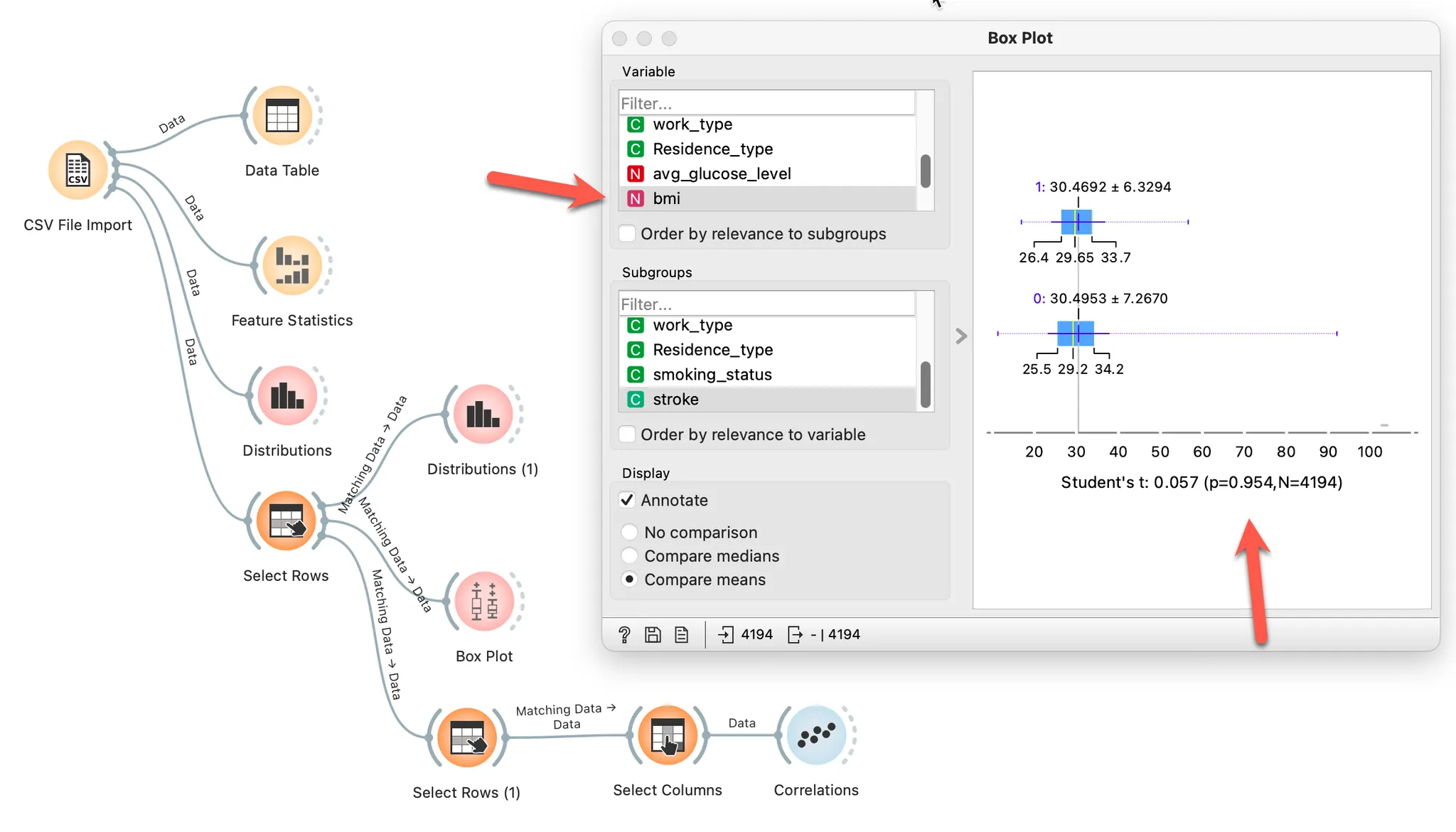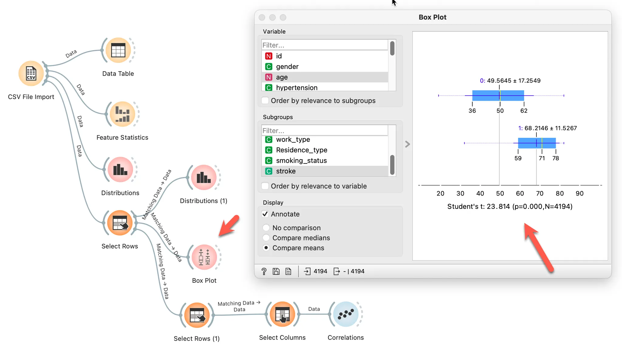 평균이 통계적으로 유의미하게 다르다고 말할 수 있다면, 그 변수는 stroke에 영향을 미칠 가능성이 큽니다.