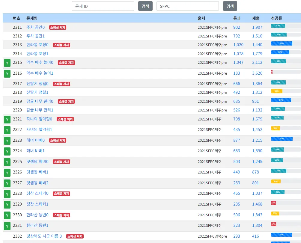CodeUp에서 ‘SFPC’ 키워드를 넣어 검색하면, 2021~2023년도 SFPC 문제들이 있어서 정답까지 확인할 수 있습니다.