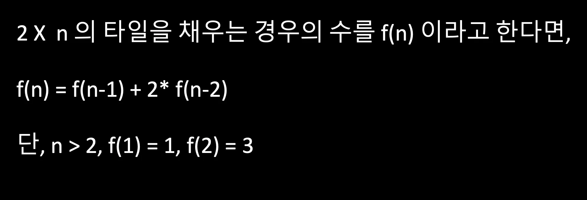 기저 상태 : dp[1] = 1, dp[2] = 3