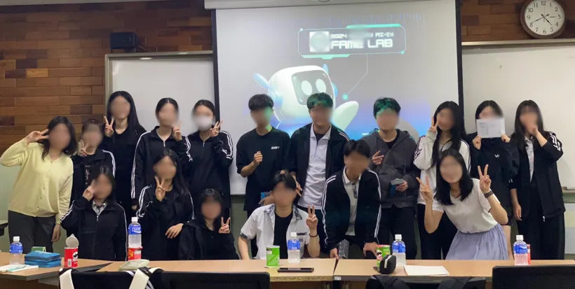 1~3학년으로 구성된 5명의 강연자와 10명의 청중 학생들이 방과 후에 모여 페임랩을 진행했습니다.