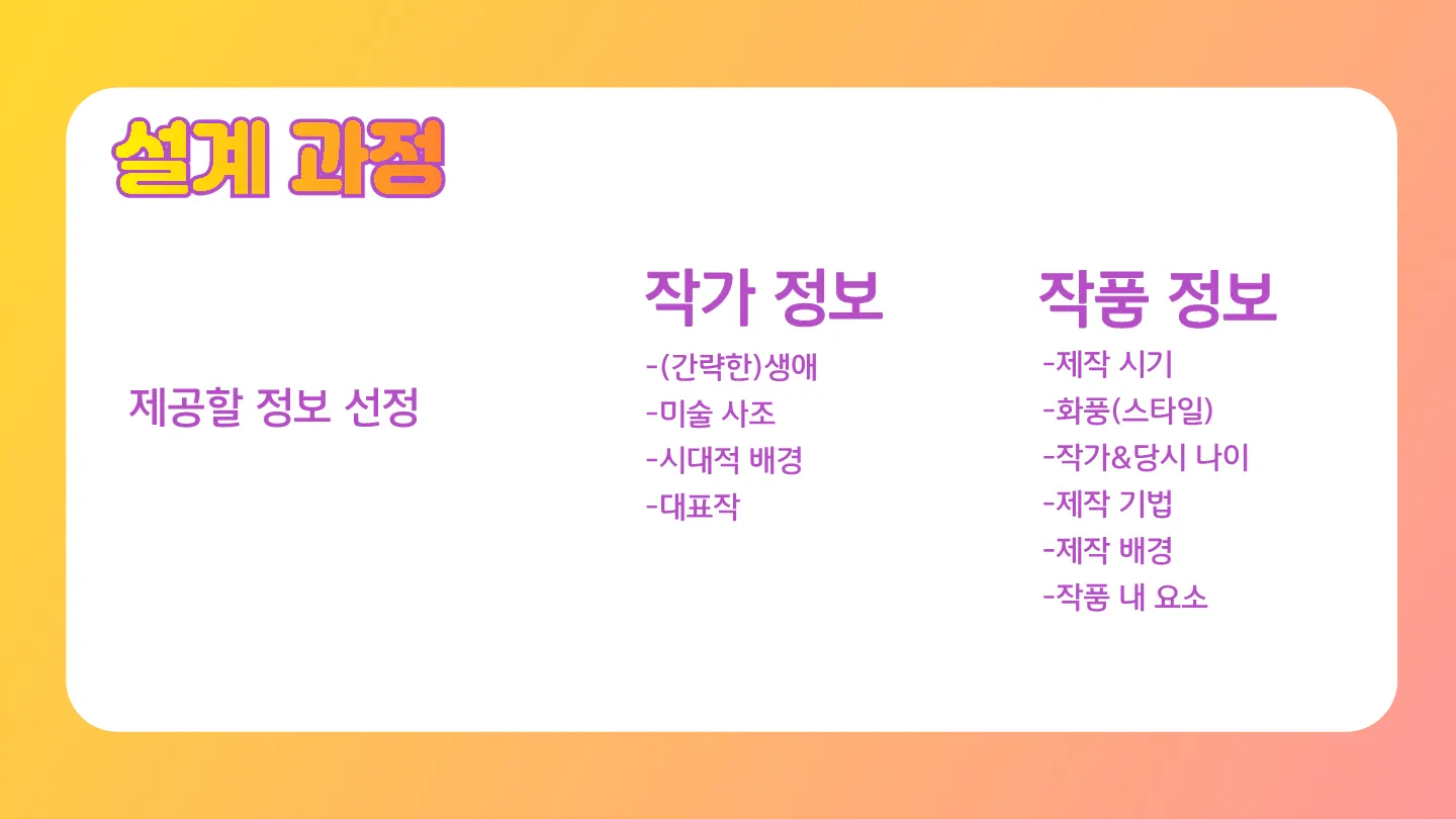 학생들이 본인의 진로와 관련된 주제를 선정할 수 있도록 개별지도를 제공했습니다. 이를 통해 학생들은 자신의 관심 분야와 연계된 주제로 프로젝트를 진행할 수 있어 동기부여를 높였습니다. 예를 들어, 미술 분야에 관심 있는 학생은 전시물 해설사 챗봇을, 교육 분야에 관심 있는 학생은 학습 보조 챗봇을 개발하도록 했습니다.