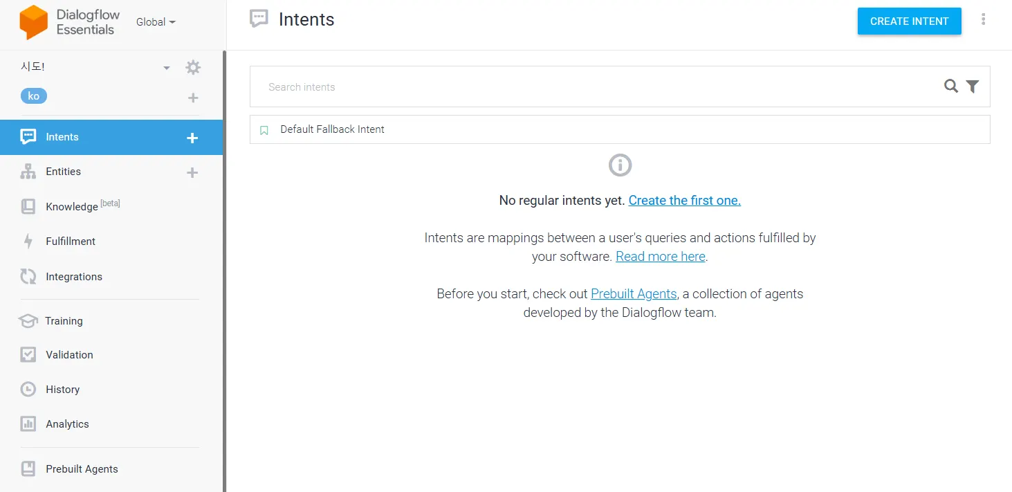 사이트 주소 : https://dialogflow.cloud.google.com/