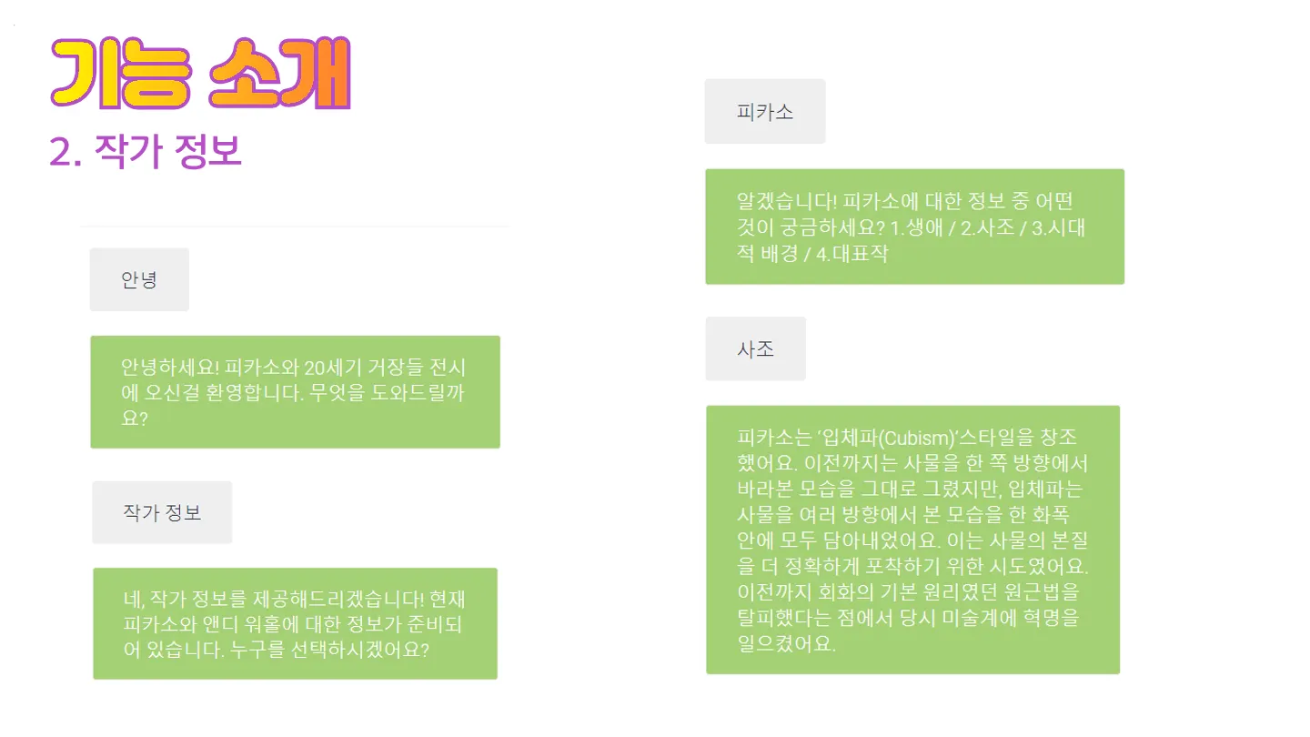 사용자가 입력하는 내용에 따라 시나리오가 다르게 흘러갈 수 있도록 챗봇 시나리오를 작성하게 지도했으며,