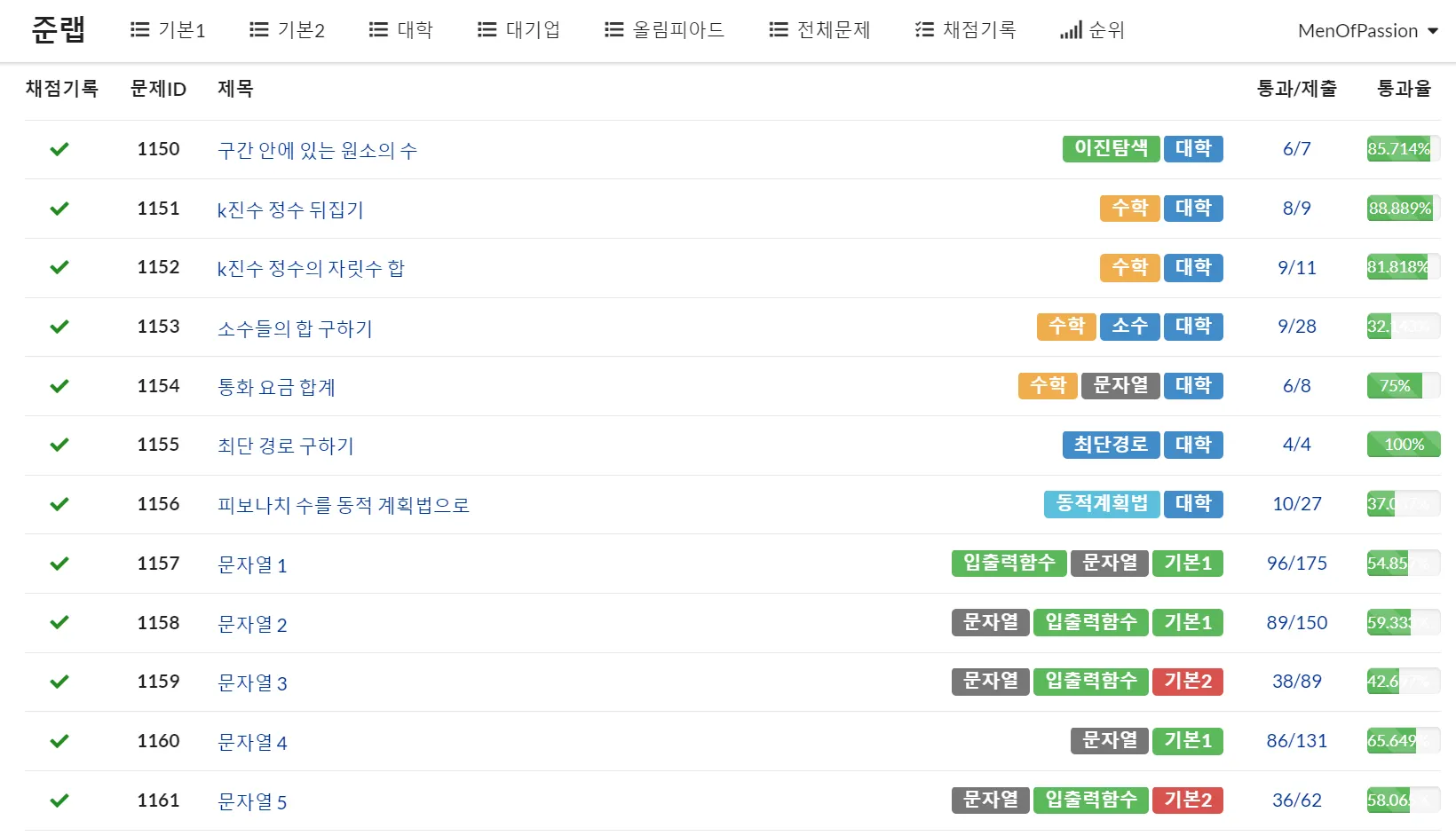 아래는 6월에 1주 동안 온라인으로 개최했던 대회의 순위표입니다.