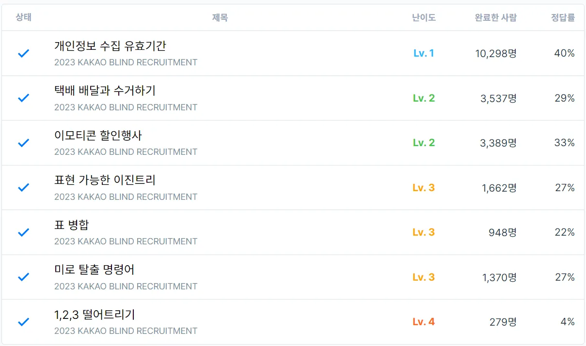 대표적인 기업 코딩테스트는 카카오, 삼성전자 코딩테스트로 진행하였고 카카오 코딩테스트는 프로그래머스에서, 삼성전자 코딩테스트는 백준 온라인 저지에서 확인할 수 있습니다.