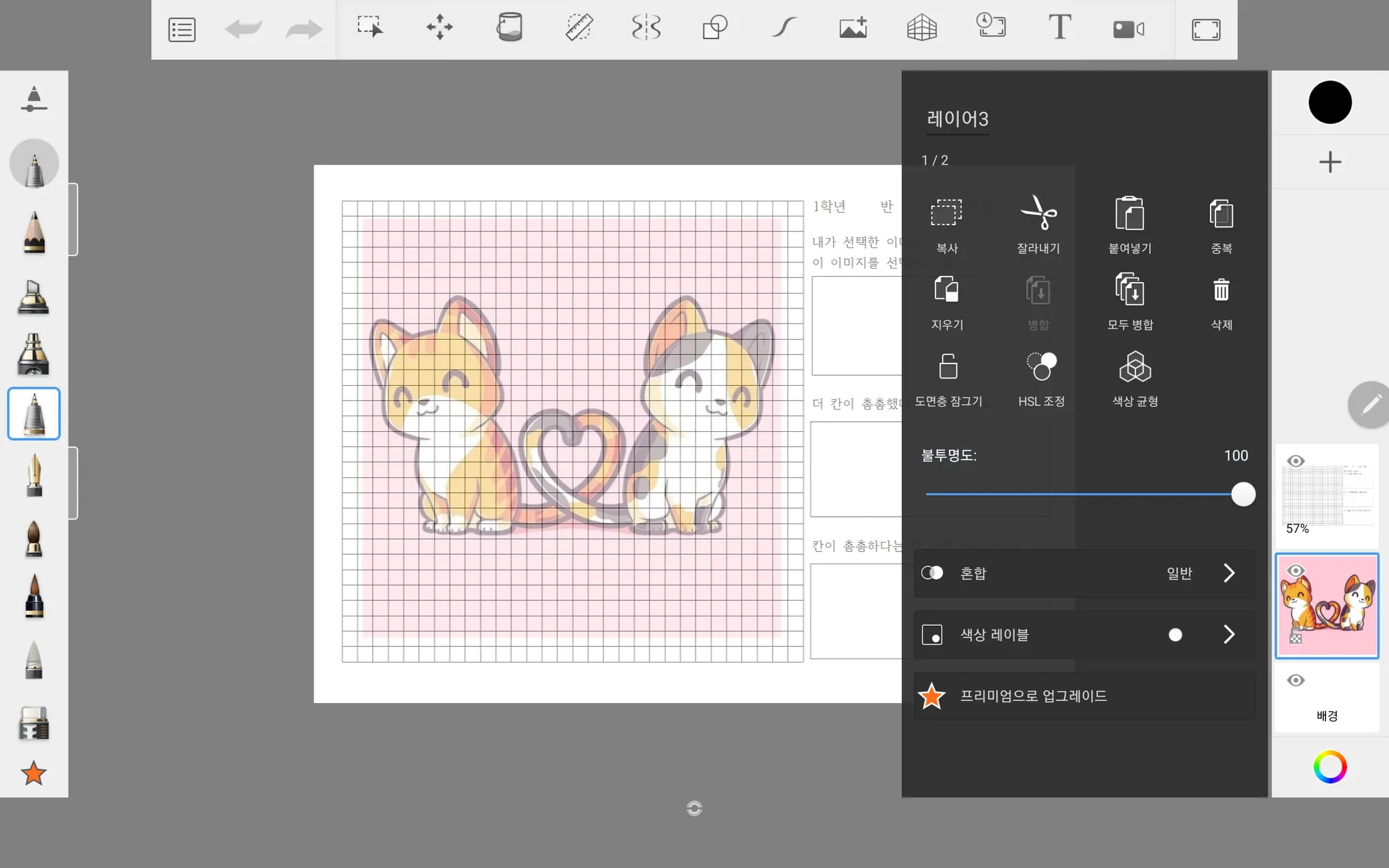 5. 오른쪽 레이어 설정 - [복사] - [활동지 파일 클릭] - [새로운 레이어 생성] - [붙여넣기]
