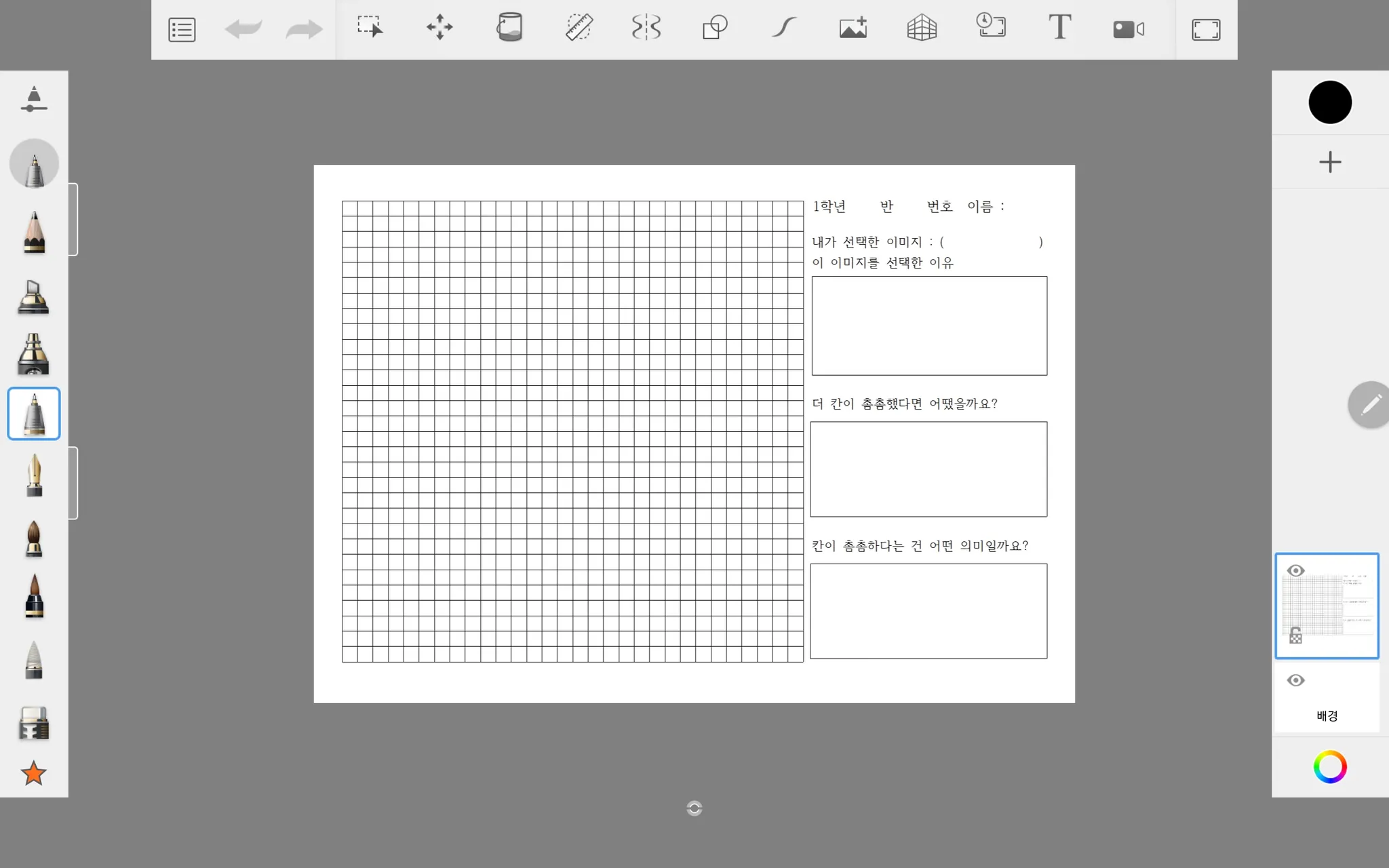 채우기는 이 활동에서 가장 중요하게 활용하는 기능이기에 꼭 필요했습니다. 또 저희 학교 학생들 중 레이어까지 만들어서 활용한 학생은 많지 않지만, 그래도 제대로 된 결과물을 만들고 싶어하는 학생들이 있을 것 같아서 레이어 기능이 있는 앱을 선택했습니다.