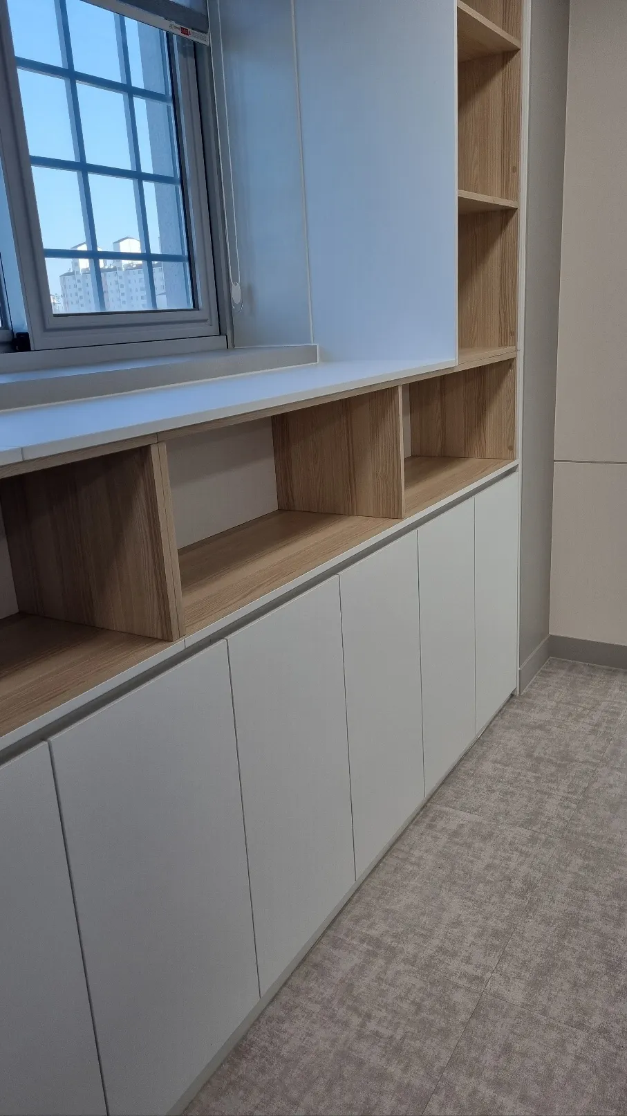 게시판, 잠시 앉을 수 있는 의자, 편한 의자, 책장 등등 고를 수 있는 옵션이 많이 있습니다. 이 역시 학교 마다 주어진 공간과 학생의 특성에 맞게 선생님들이 잘 선택하실 거라 믿습니다. 맞춤 장으로 창문을 감싸도록 제작하였고, 아직 빼곡히 채워 넣지는 않았습니다. 실은 딱히 책을 꽂아 놓을 생각이 없는 것도 사실입니다. 지금이 깨끗해서요..