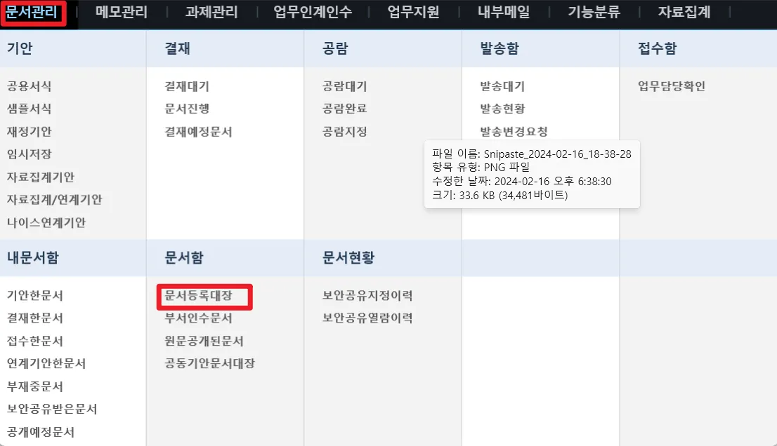 문서관리에서 대부분의 업무를 처리할 수 있습니다.