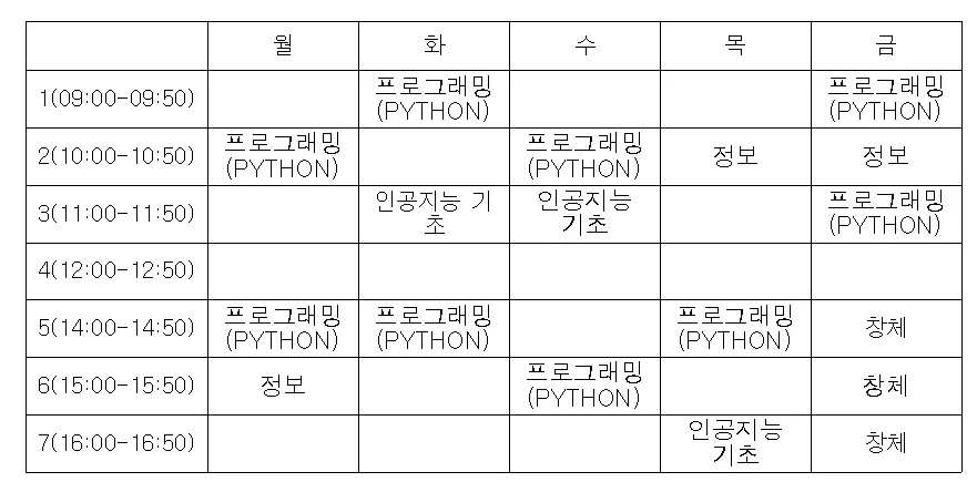 이제부터는 이러한 수업을 진행하기 위해 제가 운영했던 시간표를 공유하며, 그 과정에서의 고충을 나눠보고자 합니다.