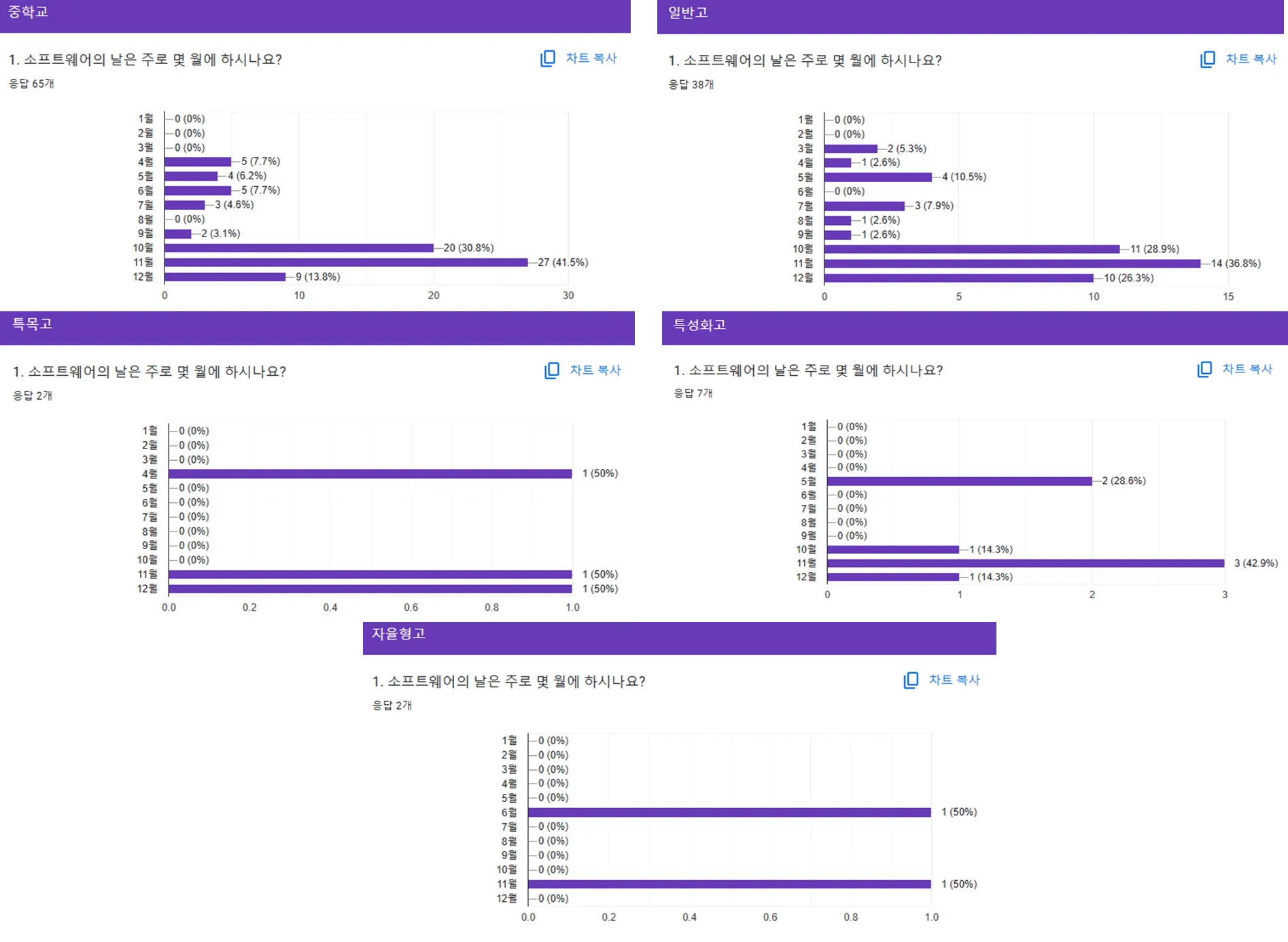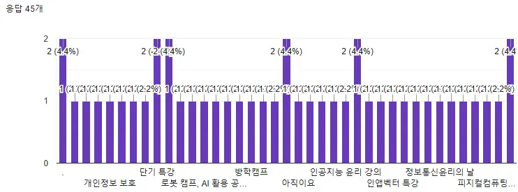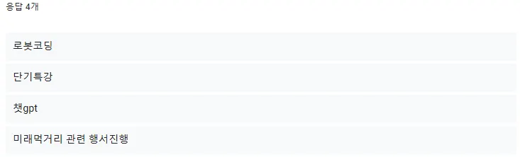 평소에 저도 다른 학교의 정보쌤들은 소프트웨어의 날을 어떻게 운영하시는지 궁금하였는데요. 결과를 통해 다양한 선생님들의 운영 방식을 확인해 볼까요!