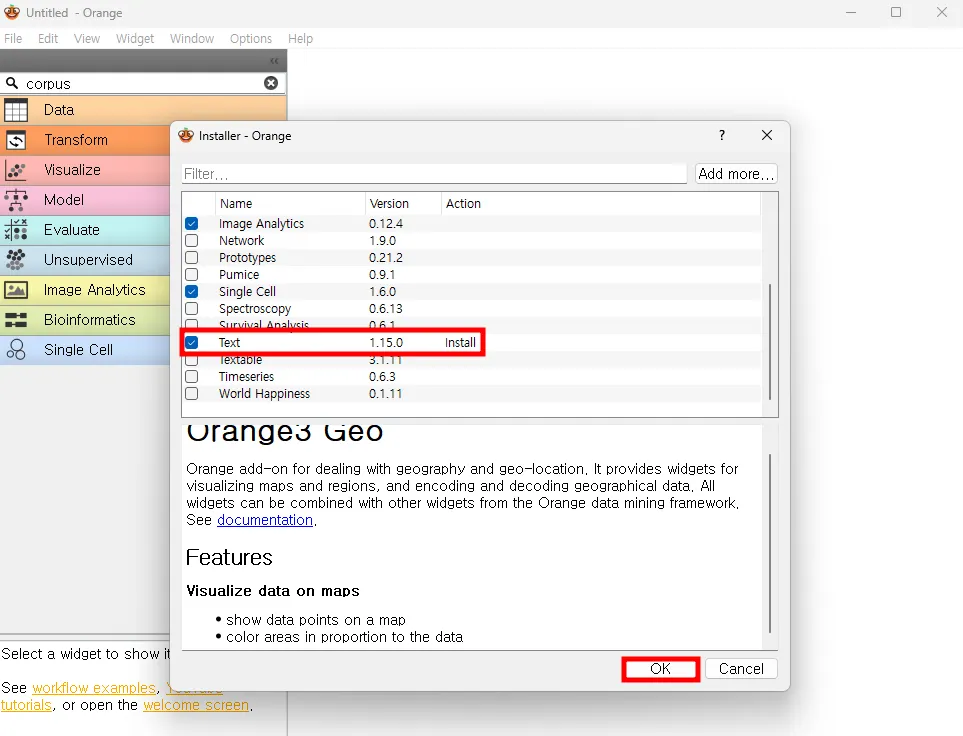 텍스트 분석을 하기 위해 ‘Text’를 설치해야 한다.