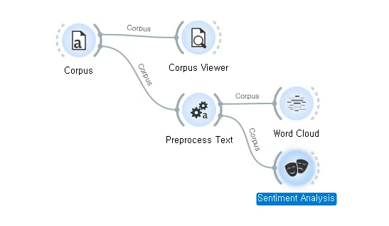 앞서 작업한 [Preprocess Text] 위젯에 [Sentiment Analysis] 를 연결한다.