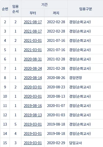 나이스창을 축소해도 한 화면에 담기지 않는 겸임 경력