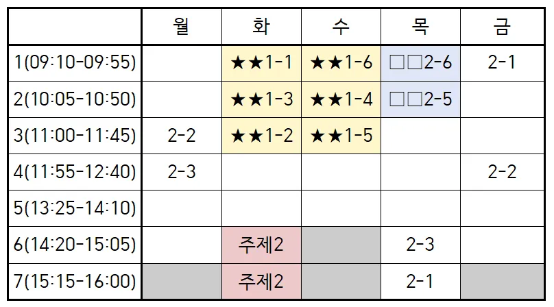 2017년 첫해는 순회 없이 정보 7반, 7시간 + 스포츠 클럽 3시간 + 진로 독서 3시간 + 주제 선택 4시간 + 선도 학교 + 방송부를 하며 내가 정보 교사인가 아니면 창체 교사인가 하는 시간을 보내던 어느날… 2018년이 드디어 도래합니다! 정보가 2단위로 올라가면서 ‘순회를 안 갈 수도 있나?’라는 생각을 하던 찰나 학급이 6반으로 줄면서 12시수로 순회 6시간을 배정받습니다. 하지만 저는 여전히 선도학교 운영과 방송부를 맡아야 했으며, 6시간의 수업을 하루 동안 모두 진행할 수 없어 담임을 하면서 주 2회씩 아침에 순회교를 가야만 했습니다.